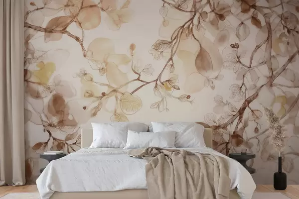 Fototapeten Luftige, herabhängende Zweige in Beigetönen im Aquarellstil N° w09795
