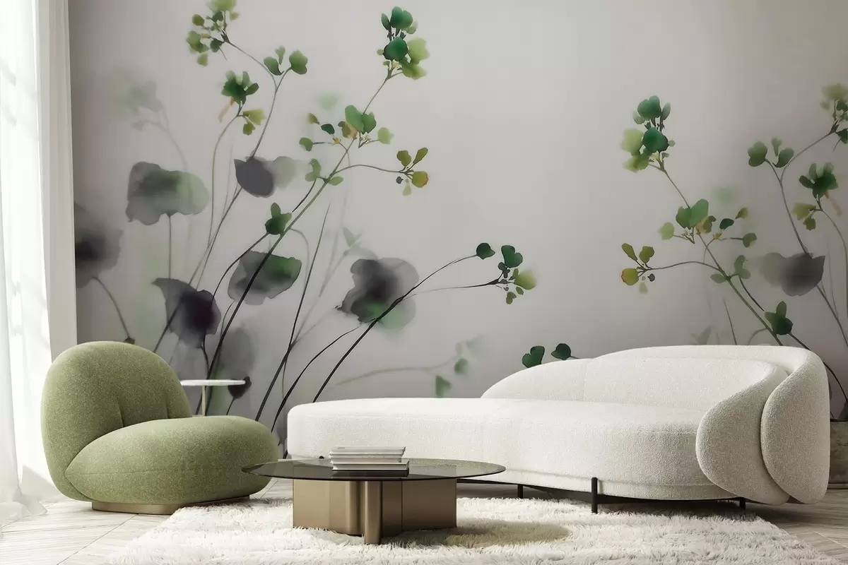 Fototapeten Zarte Wildblumen und Gräser im Aquarellstil N° w09796