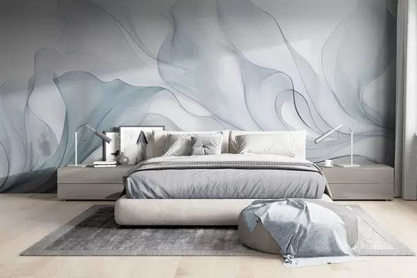 Fototapeten Abstrakte, fließende Textur in Blautönen mit zarten Linien N° w09815v1