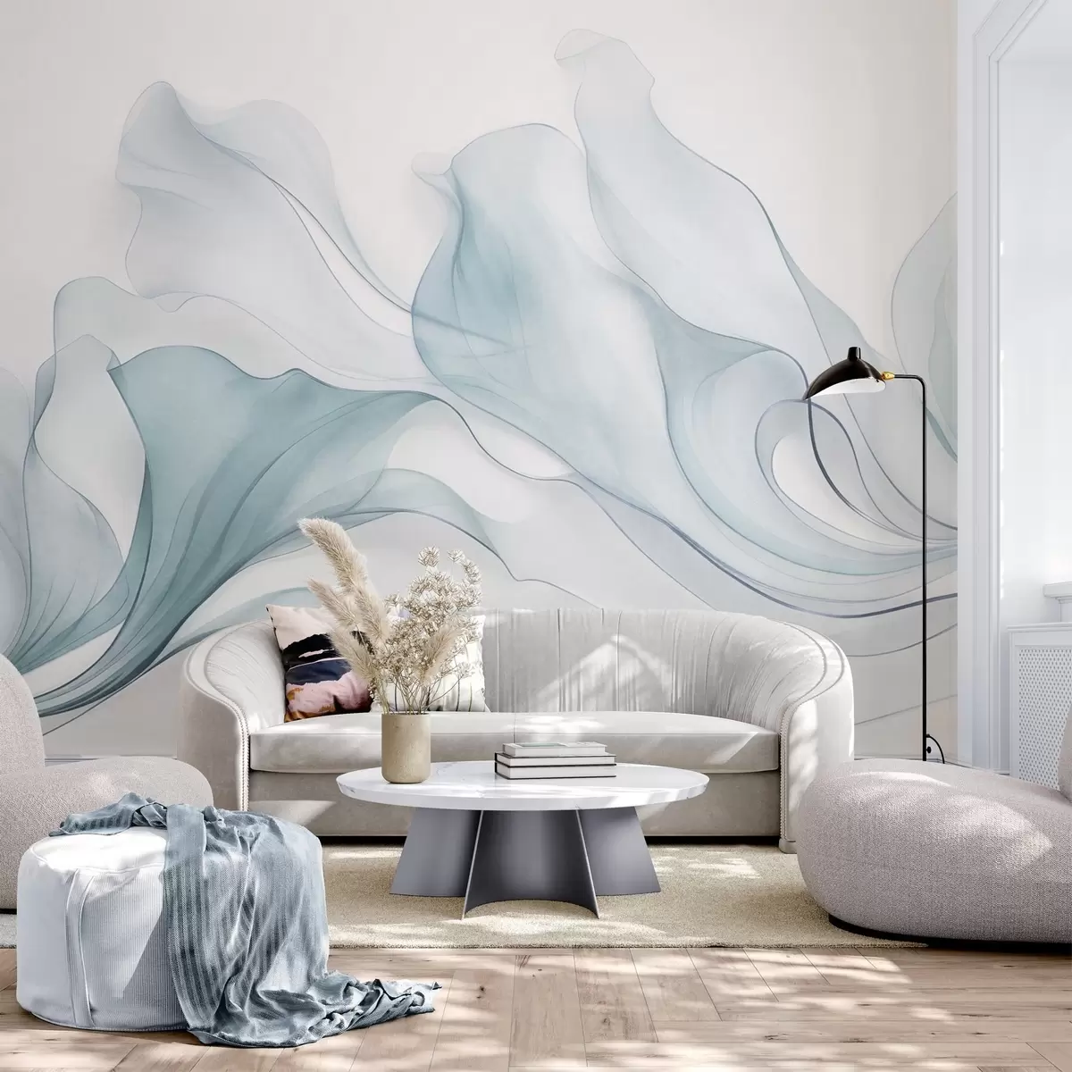 Fototapeten Abstrakte, fließende Textur in Blautönen mit zarten Linien N° w09815v1