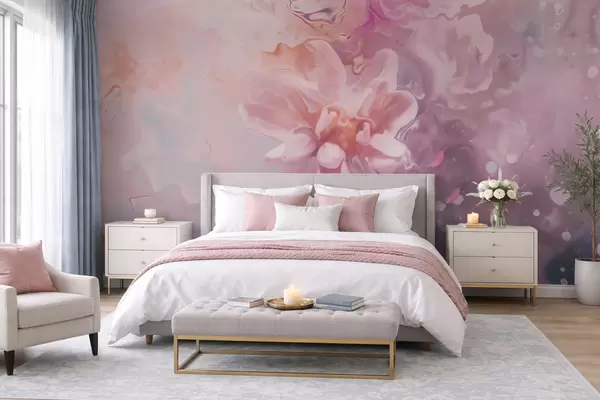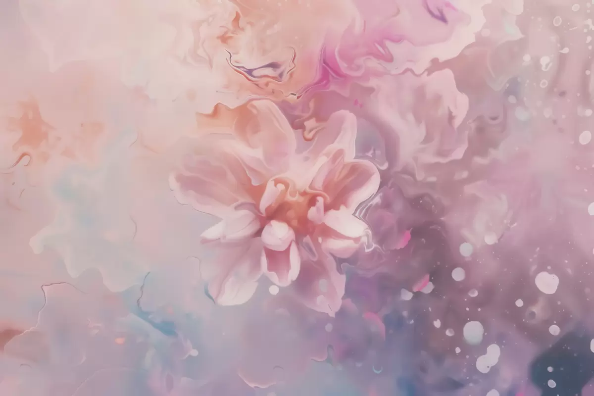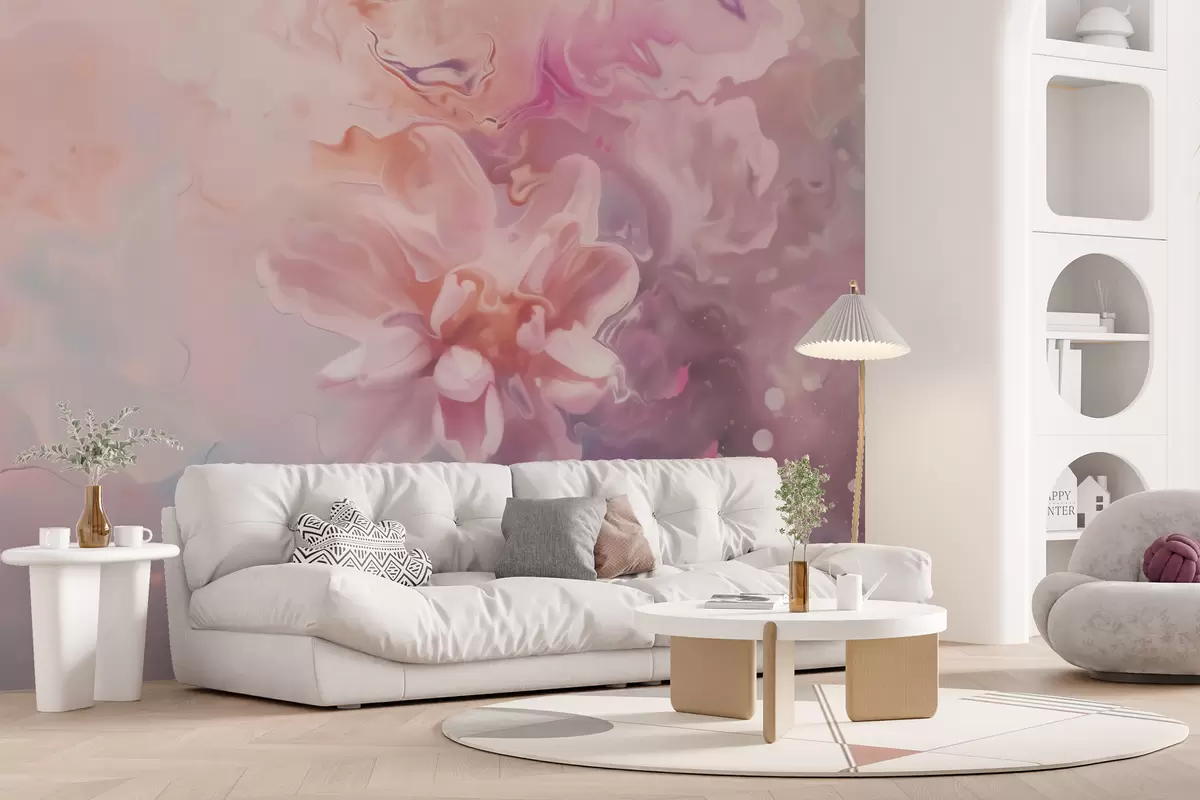 Fototapeten Eine abstrakte Komposition mit einer Blume und zartrosa Farbtönen im Aquarellstil N° w09859