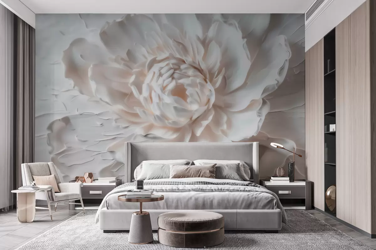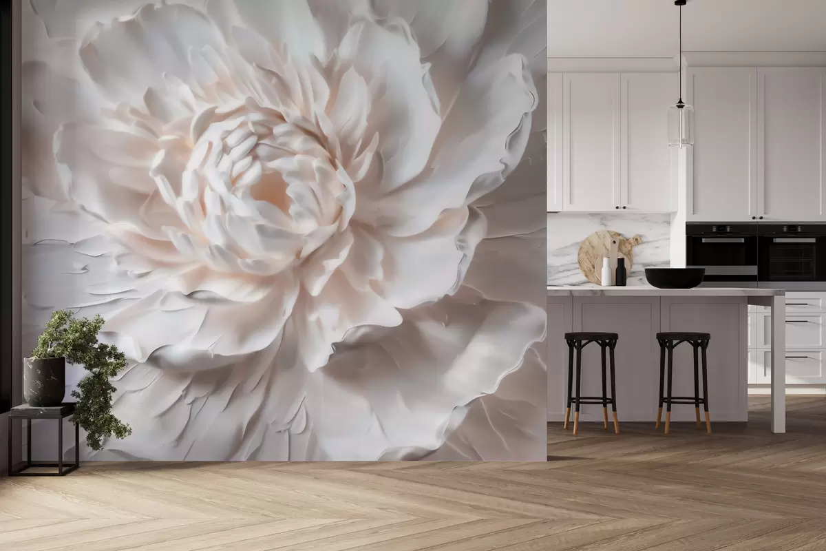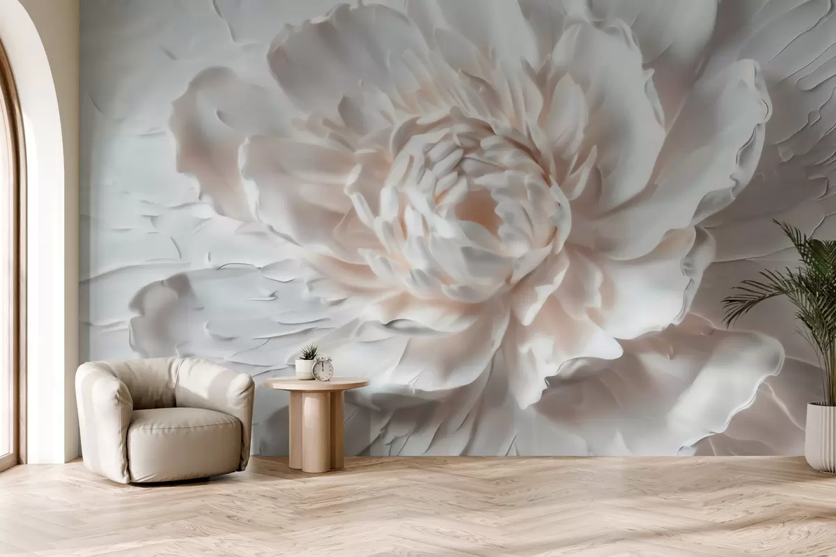Fototapeten Eine zarte Blume im Flachrelief mit glatten Blütenblättern in hellen Farbtönen N° w09861