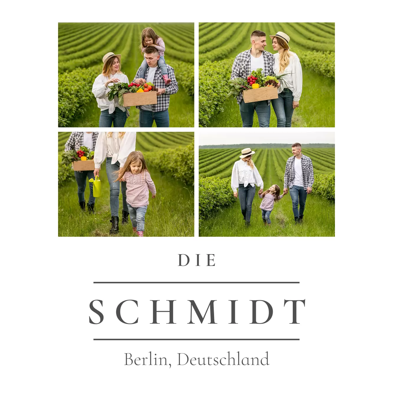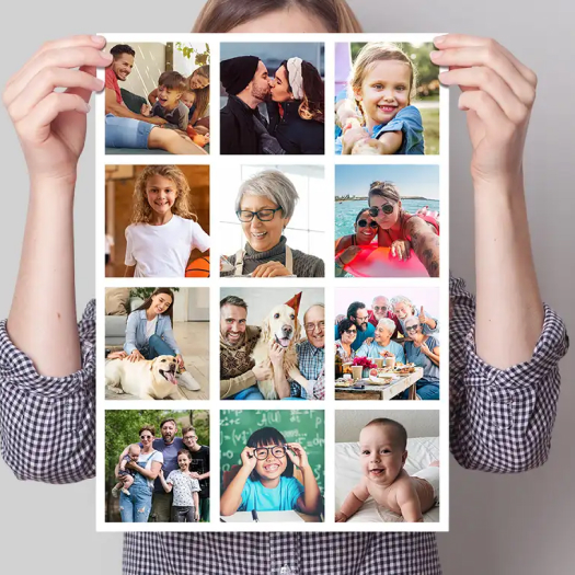 Eine Fotocollage auf Leinwand ist ein besonderes Geschenk, das Ihre persönlichen Erinnerungen und Fotos zu einem Ganzen vereint. Wählen Sie Ihre Lieblingsbilder aus Ihrem Fotoarchiv und kombinieren Sie sie zu einer Collage.