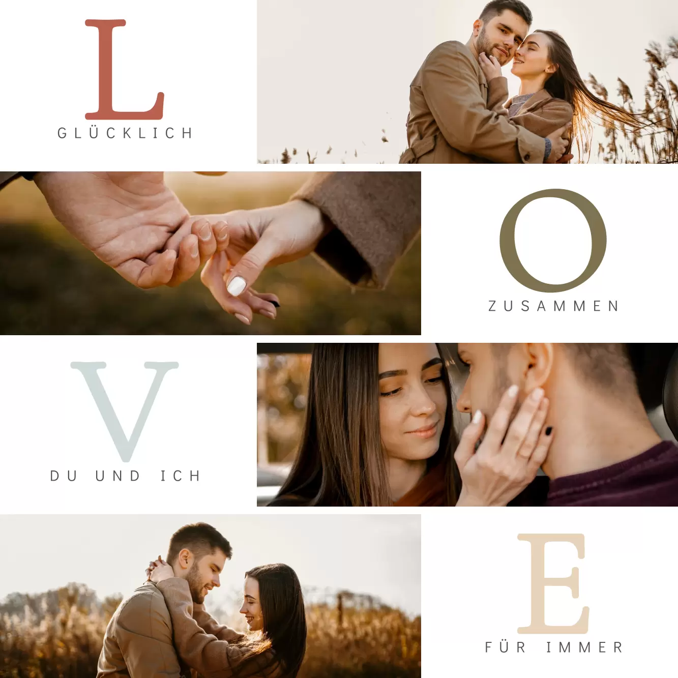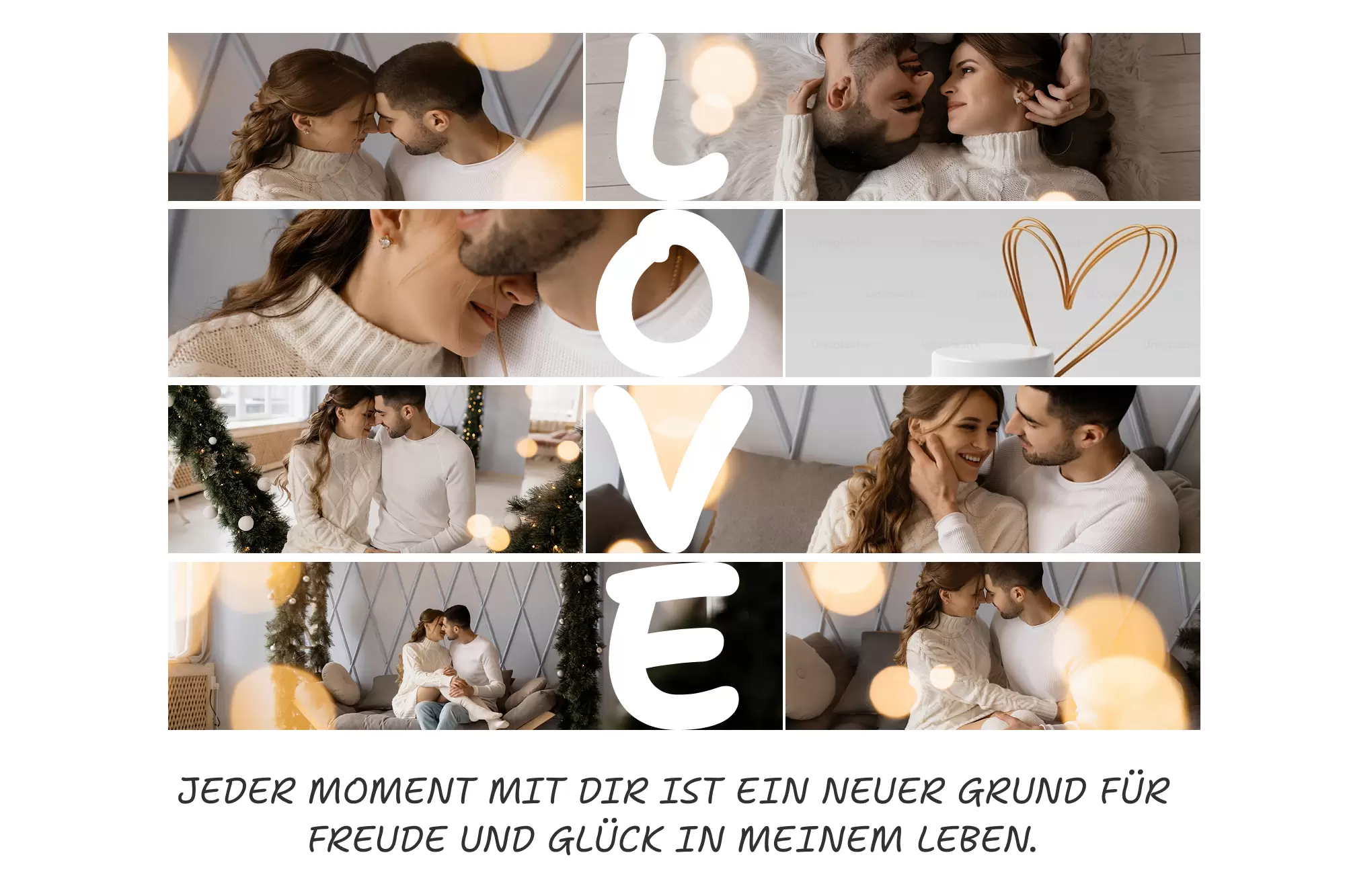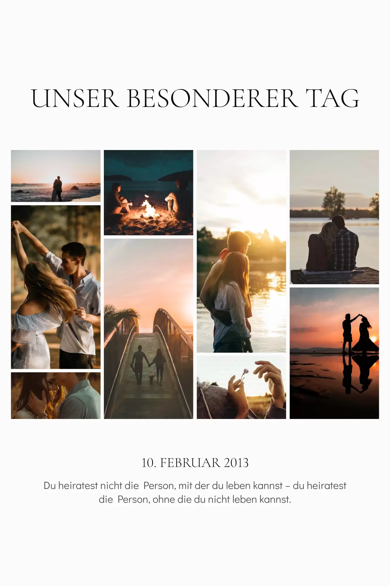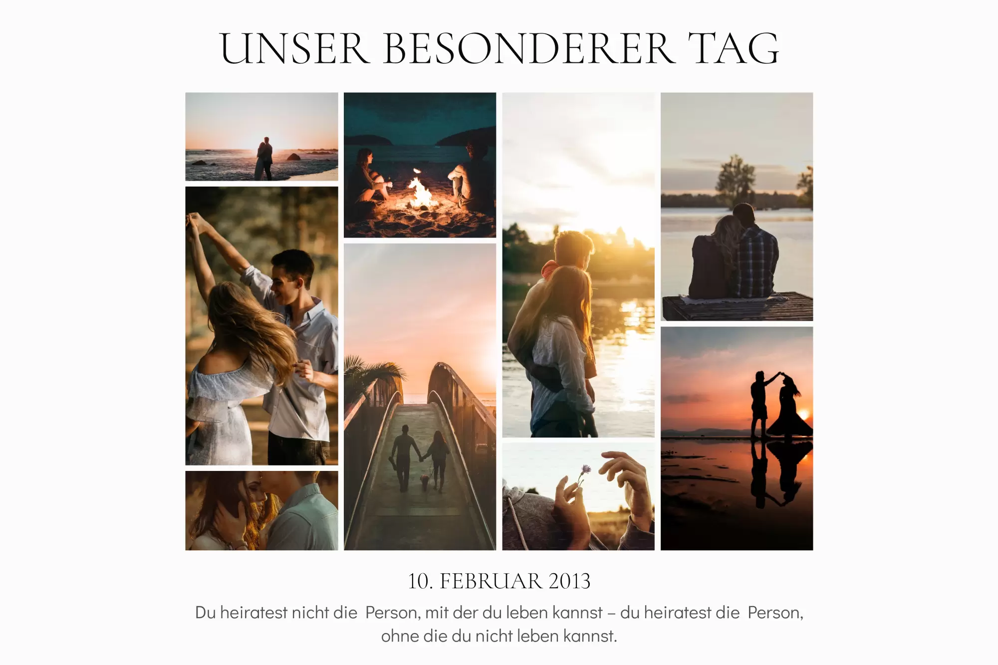 Wir erstellen eine Collage einfach und schnell mit vorgefertigten Vorlagen. Ein einzigartiges Geschenk für jede Feier mit einem individuellen Design für Ihre Fotocollage.