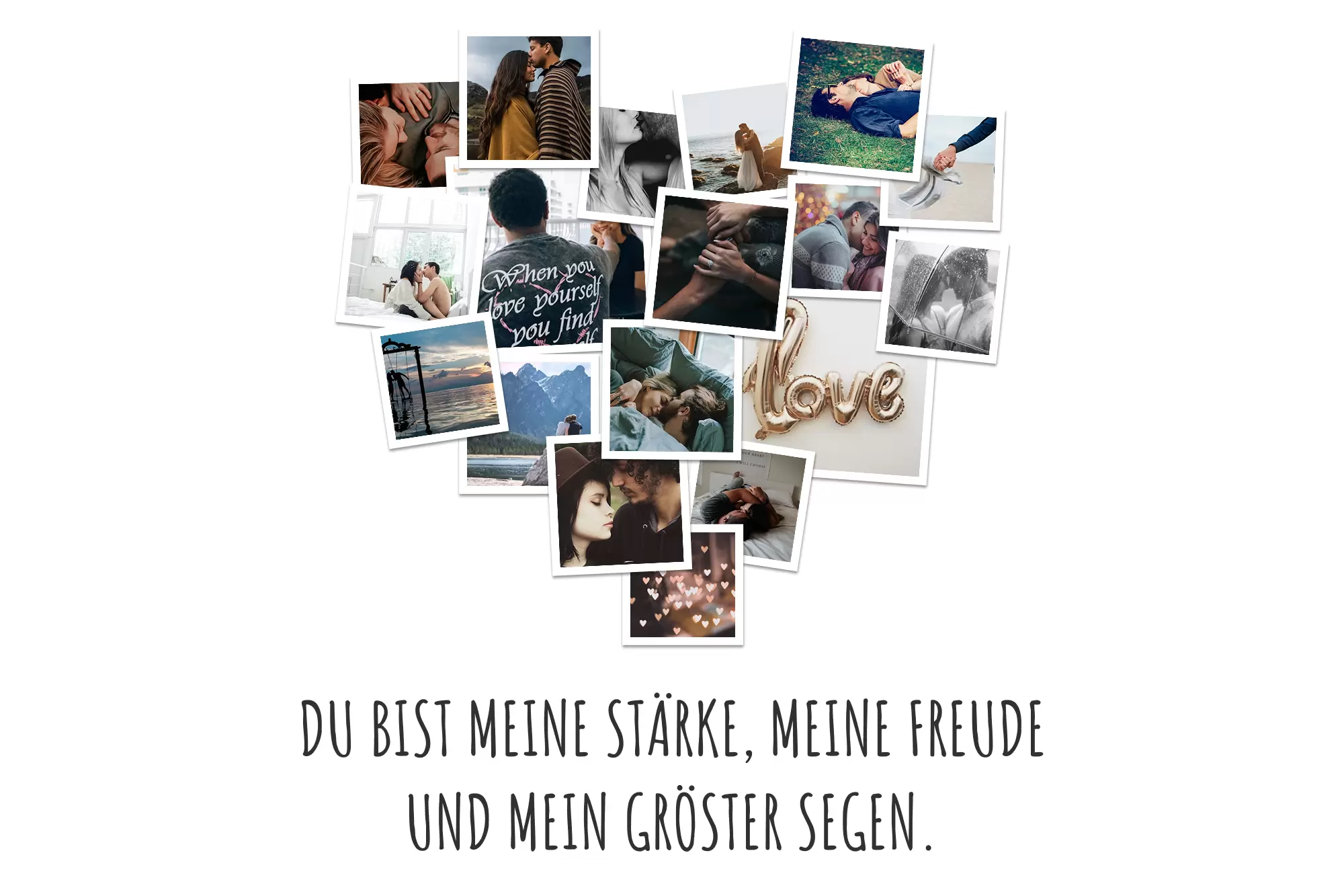 Wir erstellen eine Collage einfach und schnell mit vorgefertigten Vorlagen. Ein einzigartiges Geschenk für jede Feier mit einem individuellen Design für Ihre Fotocollage.