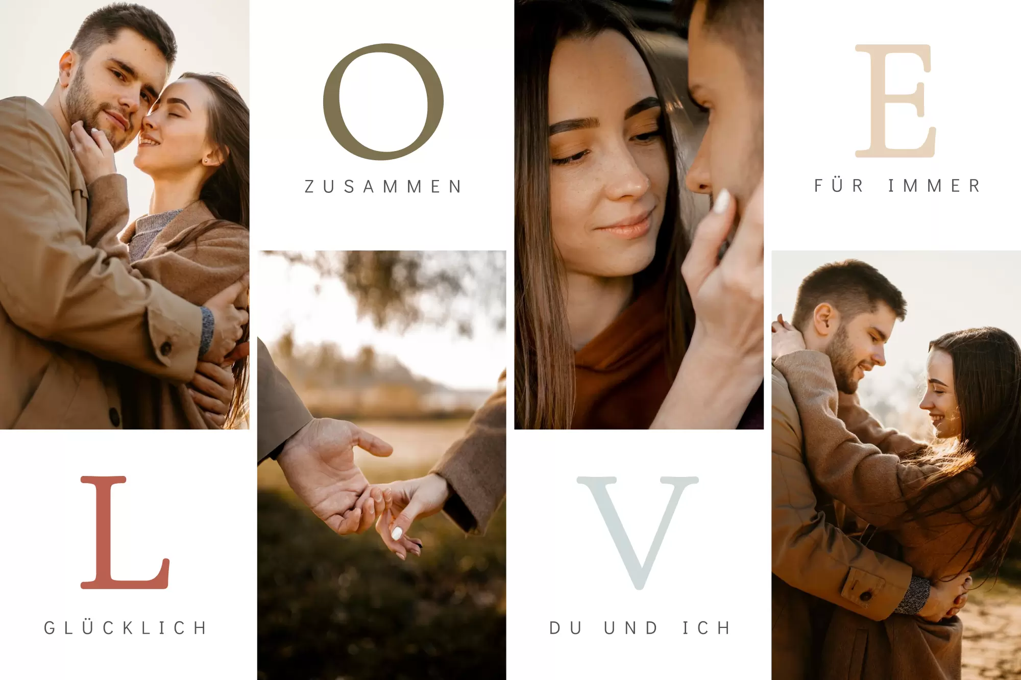 Wir erstellen eine Collage einfach und schnell mit vorgefertigten Vorlagen. Ein einzigartiges Geschenk für jede Feier mit einem individuellen Design für Ihre Fotocollage.