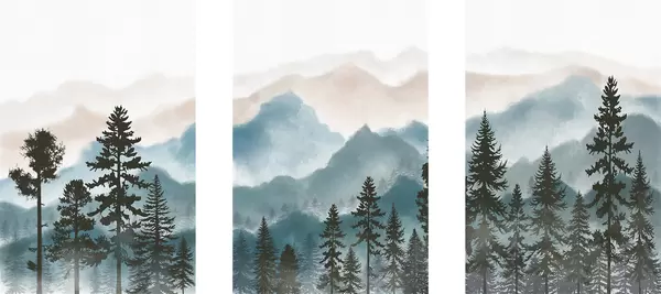 Poster Ruhige Berge und sich abzeichnende Bäume Nr d00244