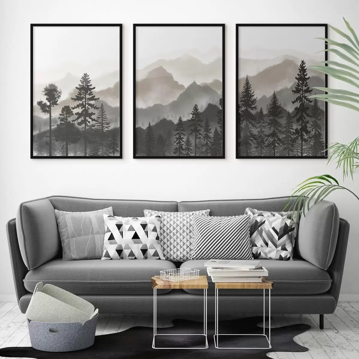 Poster Ruhige Berglandschaft mit Bäumen d00244v1
