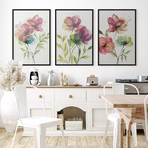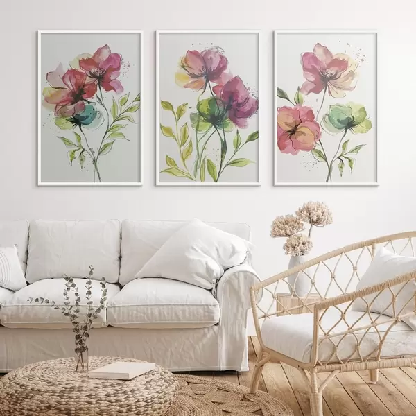 Poster Zarte Aquarellblumen mit Farbspritzern Nr d00340