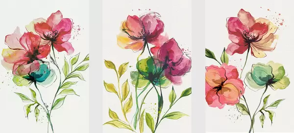 Poster Zarte Aquarellblumen mit Farbspritzern Nr d00340