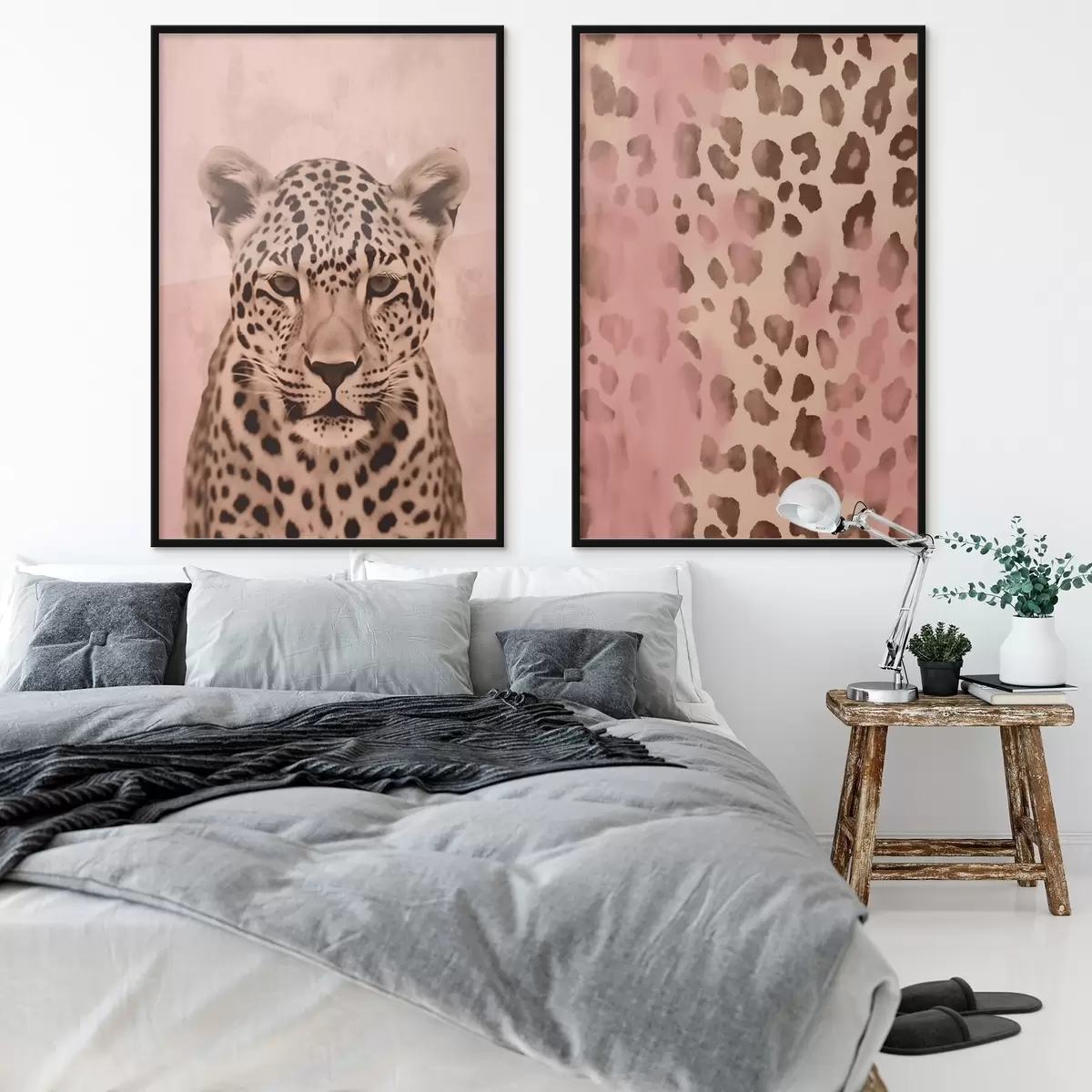 Poster Portrait eines Geparden, Abstraktes Muster mit Leopardenmuster auf rosa Hintergrund d00402