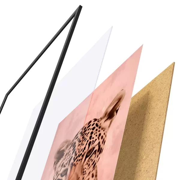 Das Poster besteht aus einem Rahmen, Plexiglas, einem gedruckten Bild und einer Rückwand aus Spanplatten. Dank der Halterungen auf der Rückseite kann das Poster sofort an die Wand gehängt werden.