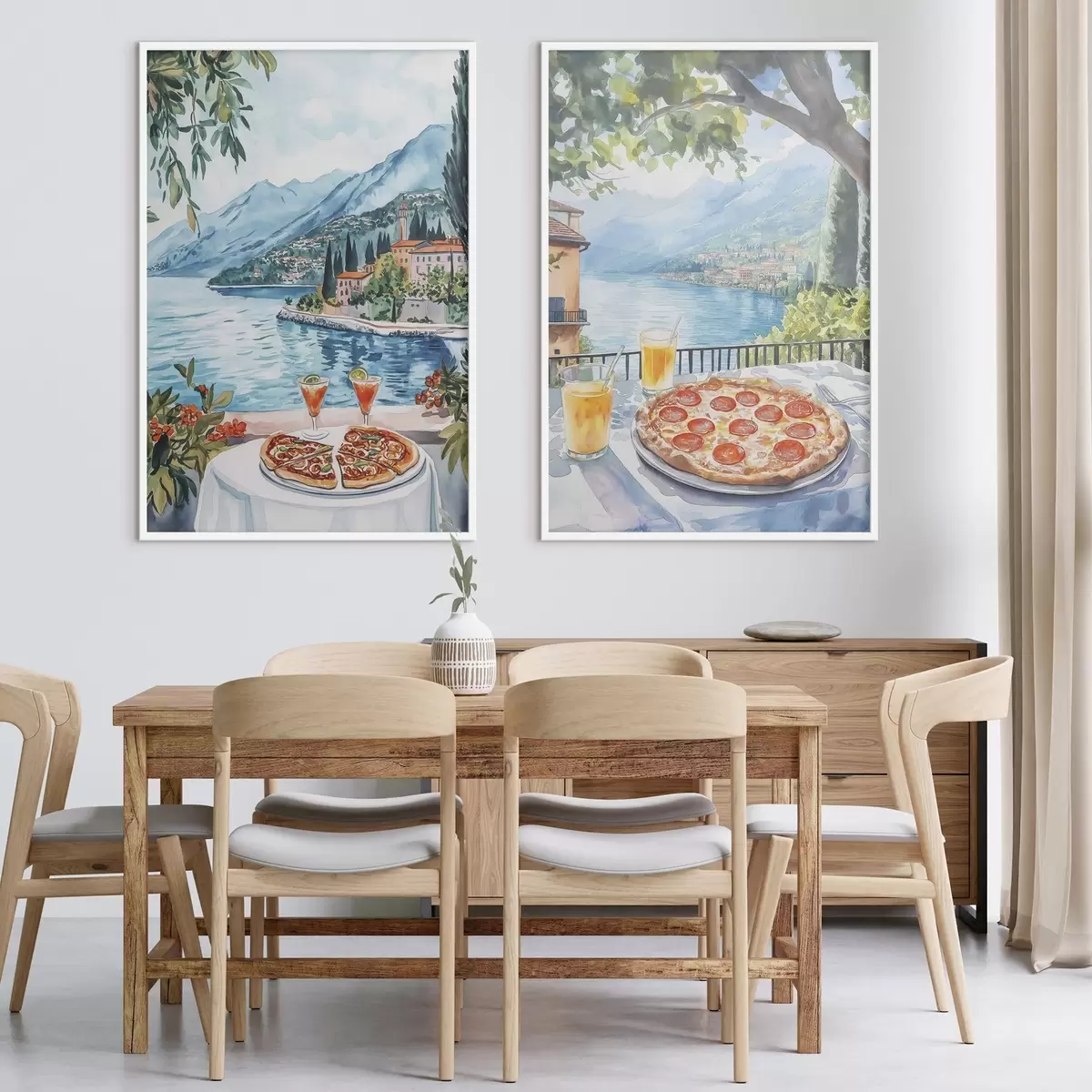 Poster Comer See, Brunch in Italien, Aquarellstil, Pizza Margarita, Sommer Natur d00406