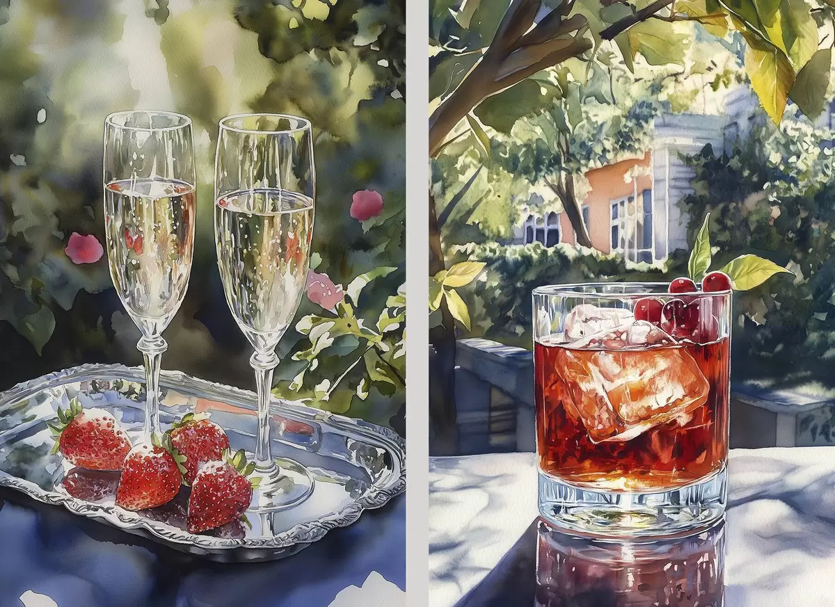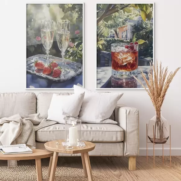 Poster Leckere Cocktails mit Beeren, Aquarellstil, Ästhetik, Sommernatur d00415