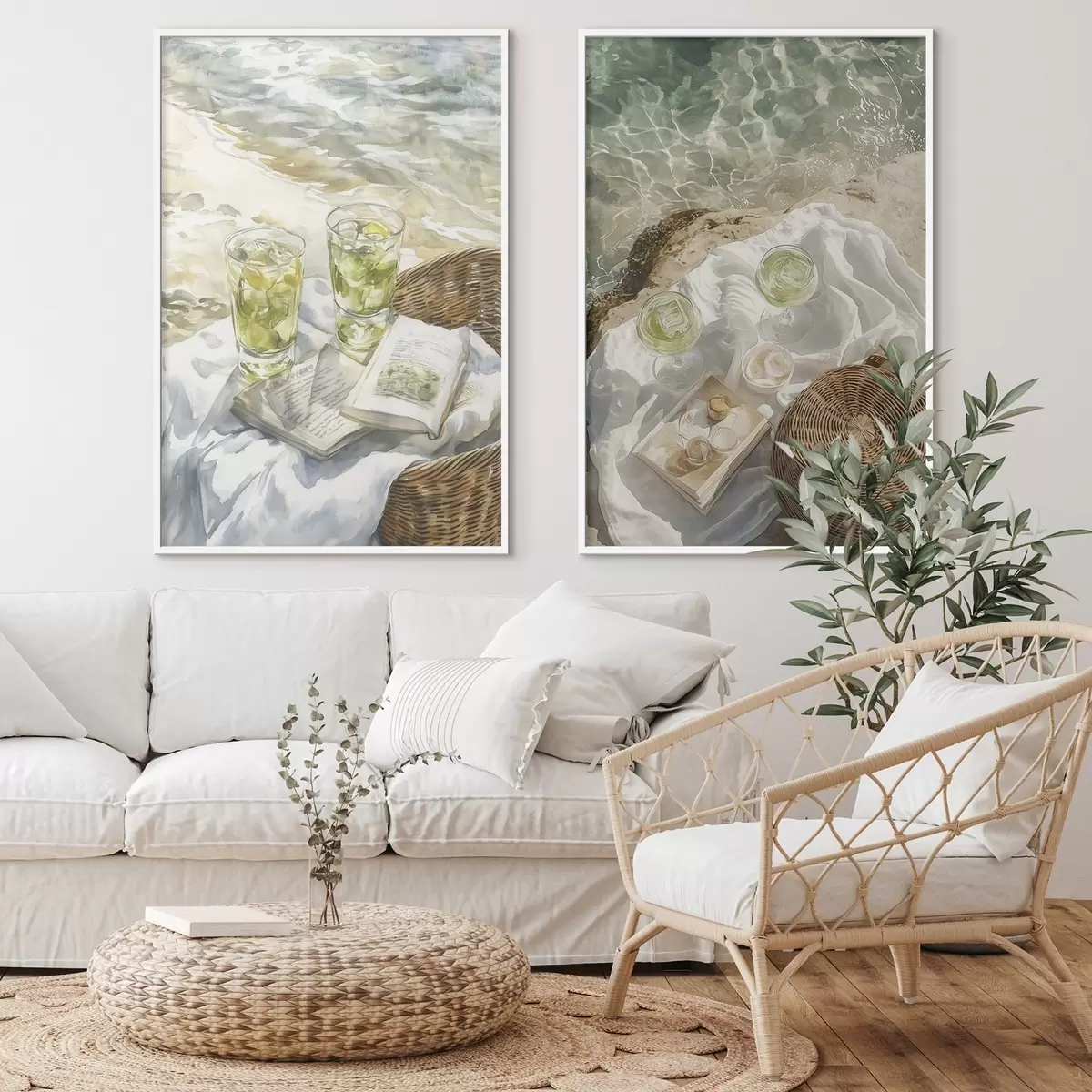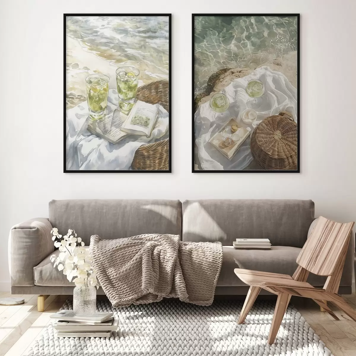 Poster Cocktails am Strand, Aquarell-Stil Zeichnung, Meer, Sommer-Picknick Nr d00417