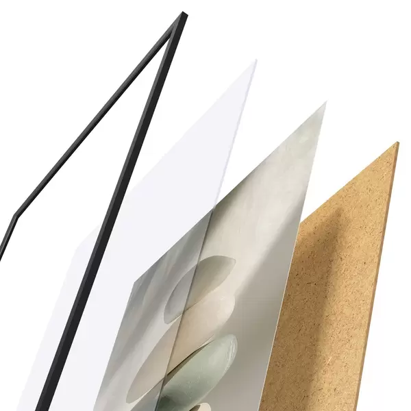 Das Poster besteht aus einem Rahmen, Plexiglas, einem gedruckten Bild und einer Rückwand aus Spanplatten. Dank der Halterungen auf der Rückseite kann das Poster sofort an die Wand gehängt werden.