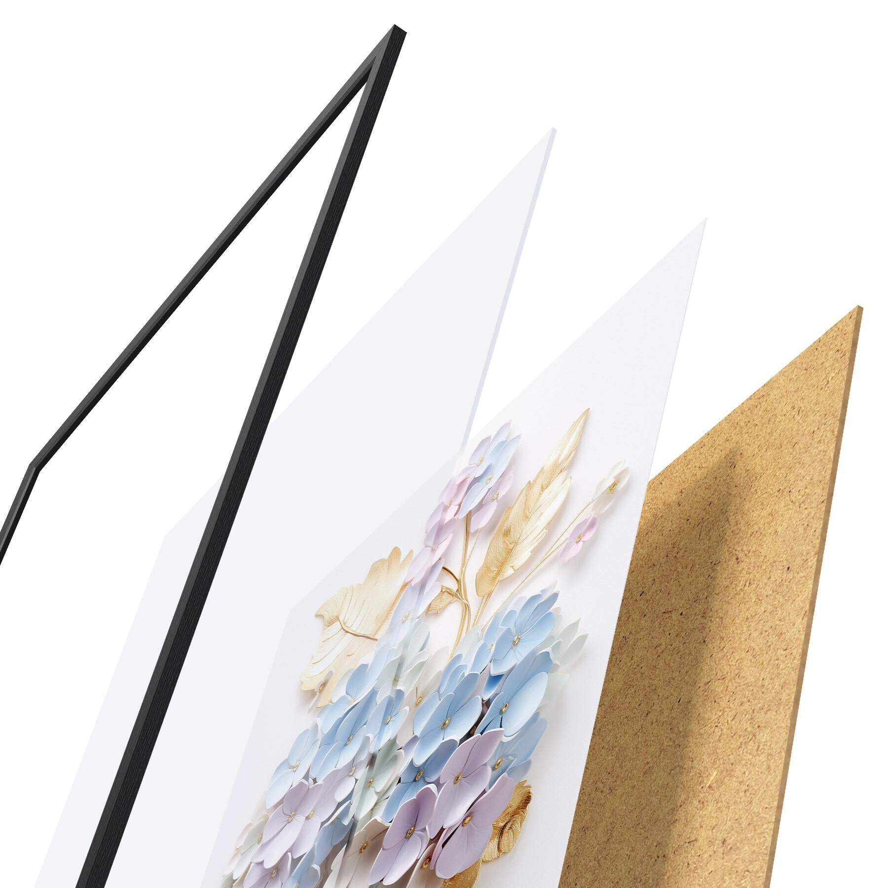 Das Poster besteht aus einem Rahmen, Plexiglas, einem gedruckten Bild und einer Rückwand aus Spanplatten. Dank der Halterungen auf der Rückseite kann das Poster sofort an die Wand gehängt werden.