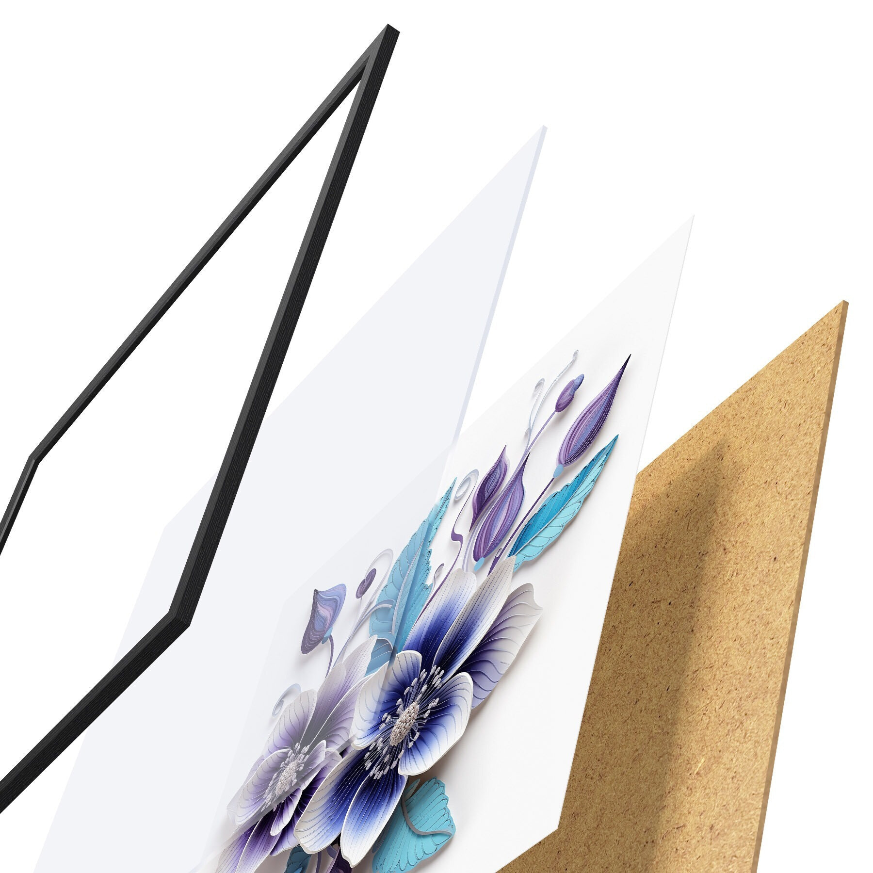 Das Poster besteht aus einem Rahmen, Plexiglas, einem gedruckten Bild und einer Rückwand aus Spanplatten. Dank der Halterungen auf der Rückseite kann das Poster sofort an die Wand gehängt werden.
