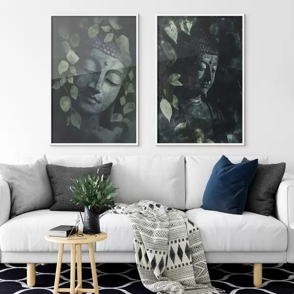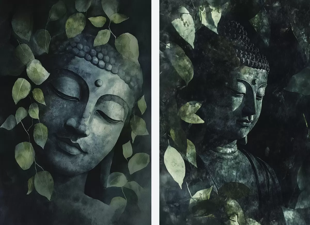 Poster Grüner Buddha in tropischen Blättern, Aquarellstil d00451