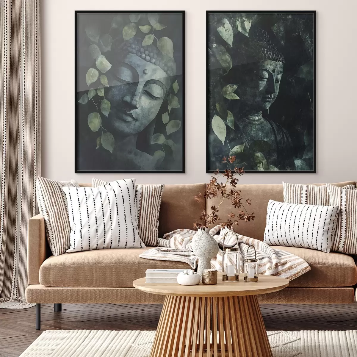 Poster Grüner Buddha in tropischen Blättern, Aquarellstil Nr d00451