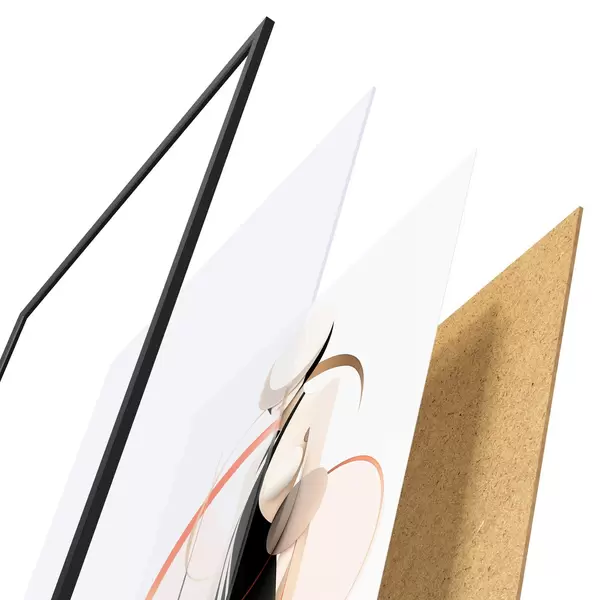 Das Poster besteht aus einem Rahmen, Plexiglas, einem gedruckten Bild und einer Rückwand aus Spanplatten. Dank der Halterungen auf der Rückseite kann das Poster sofort an die Wand gehängt werden.