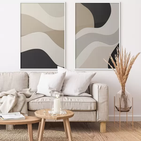 Poster Abstrakte Wellen in Beige- und Schwarztönen d00460
