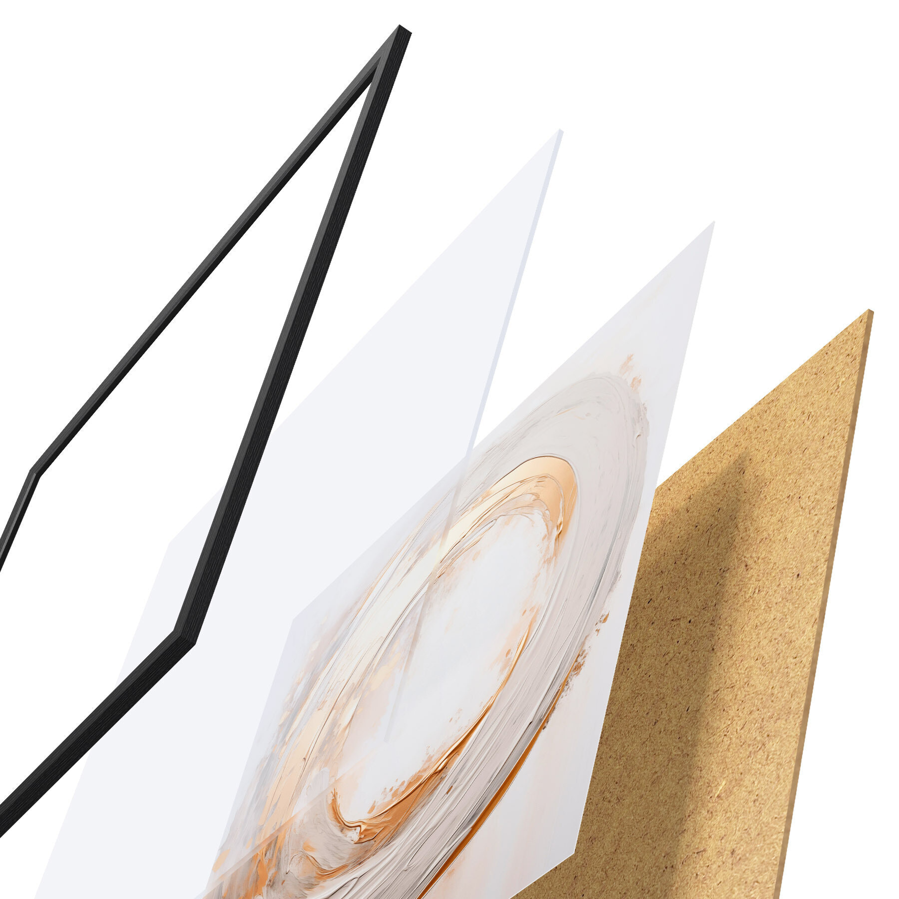Das Poster besteht aus einem Rahmen, Plexiglas, einem gedruckten Bild und einer Rückwand aus Spanplatten. Dank der Halterungen auf der Rückseite kann das Poster sofort an die Wand gehängt werden.