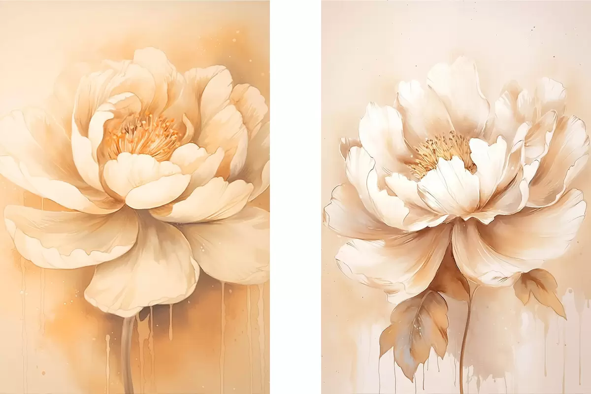 Drei Materialtypen stehen zur Verfügung: Economic Canvas - ein dichtes und haltbares Material für den Digitaldruck, identisch mit Malerleinwand, wasserfeste Oberfläche, realistische Wiedergabe von Details, mittelkörniges Material. Premium Canvas - die Textur ähnelt der einer Malerleinwand (verwobene kleine Fäden). Weiche, detaillierte Wiedergabe des Bildes auf einer matten Oberfläche. Eco-Premium - hochwertiges Gewebe aus 100% Baumwolle. Dank der natürlichen Baumwollfasern ist das Material langlebig und verschleißfest. Hervorragende Farbwiedergabe und Detailtreue.