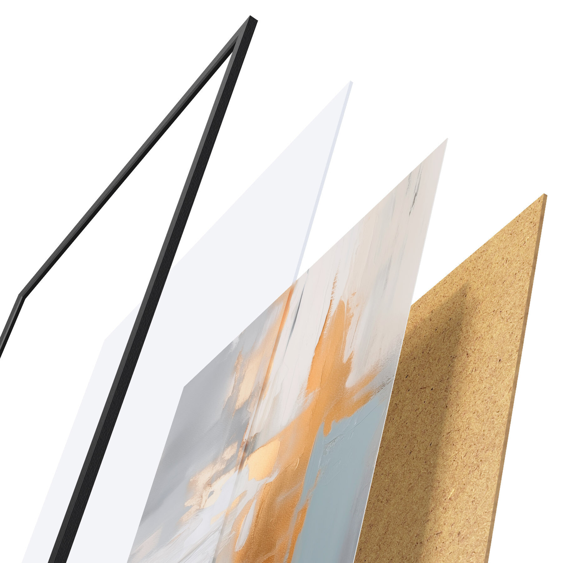 Das Poster besteht aus einem Rahmen, Plexiglas, einem gedruckten Bild und einer Rückwand aus Spanplatten. Dank der Halterungen auf der Rückseite kann das Poster sofort an die Wand gehängt werden.