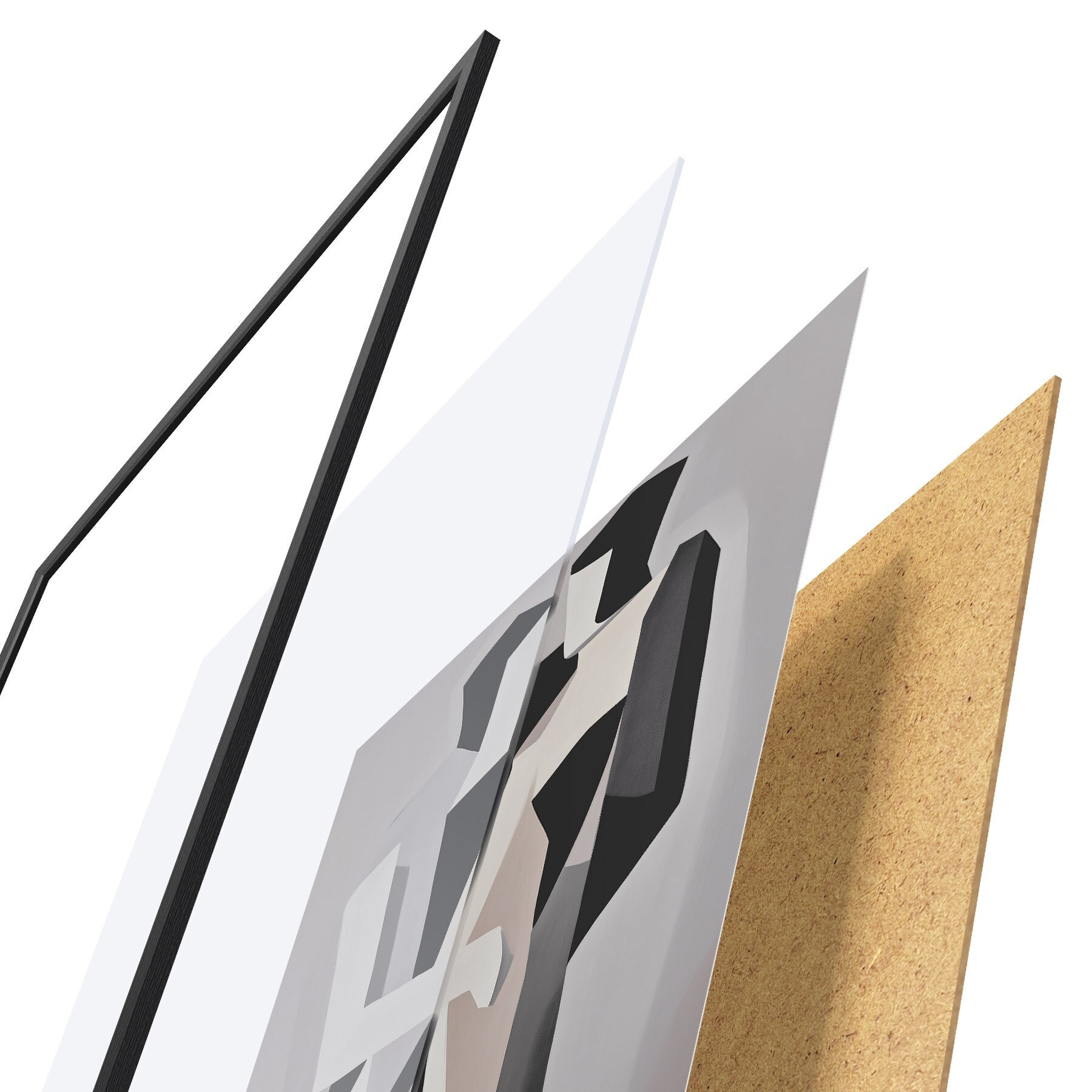 Das Poster besteht aus einem Rahmen, Plexiglas, einem gedruckten Bild und einer Rückwand aus Spanplatten. Dank der Halterungen auf der Rückseite kann das Poster sofort an die Wand gehängt werden.