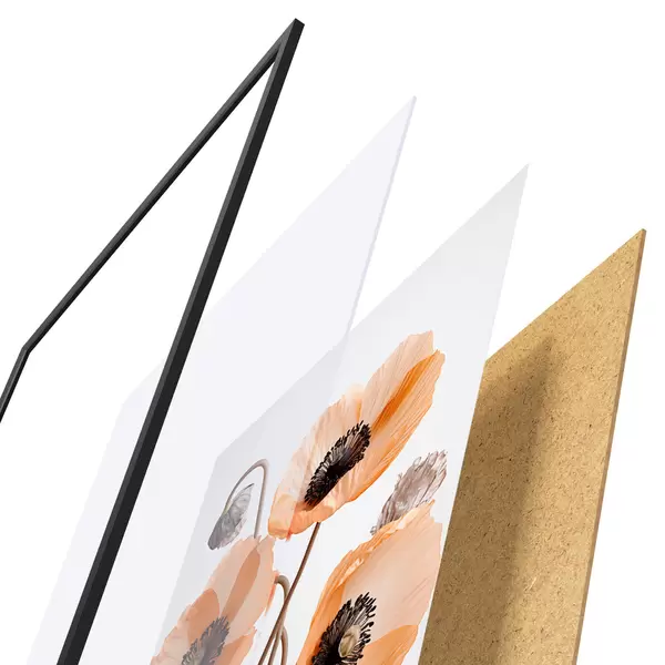 Das Poster besteht aus einem Rahmen, Plexiglas, einem gedruckten Bild und einer Rückwand aus Spanplatten. Dank der Halterungen auf der Rückseite kann das Poster sofort an die Wand gehängt werden.