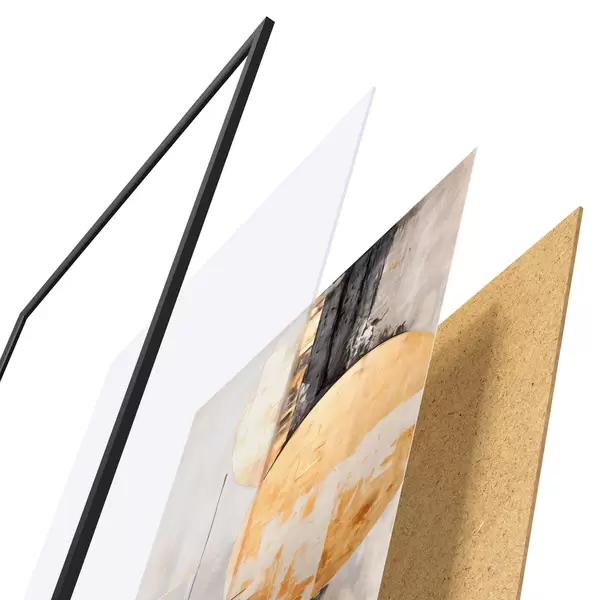 Das Poster besteht aus einem Rahmen, Plexiglas, einem gedruckten Bild und einer Rückwand aus Spanplatten. Dank der Halterungen auf der Rückseite kann das Poster sofort an die Wand gehängt werden.