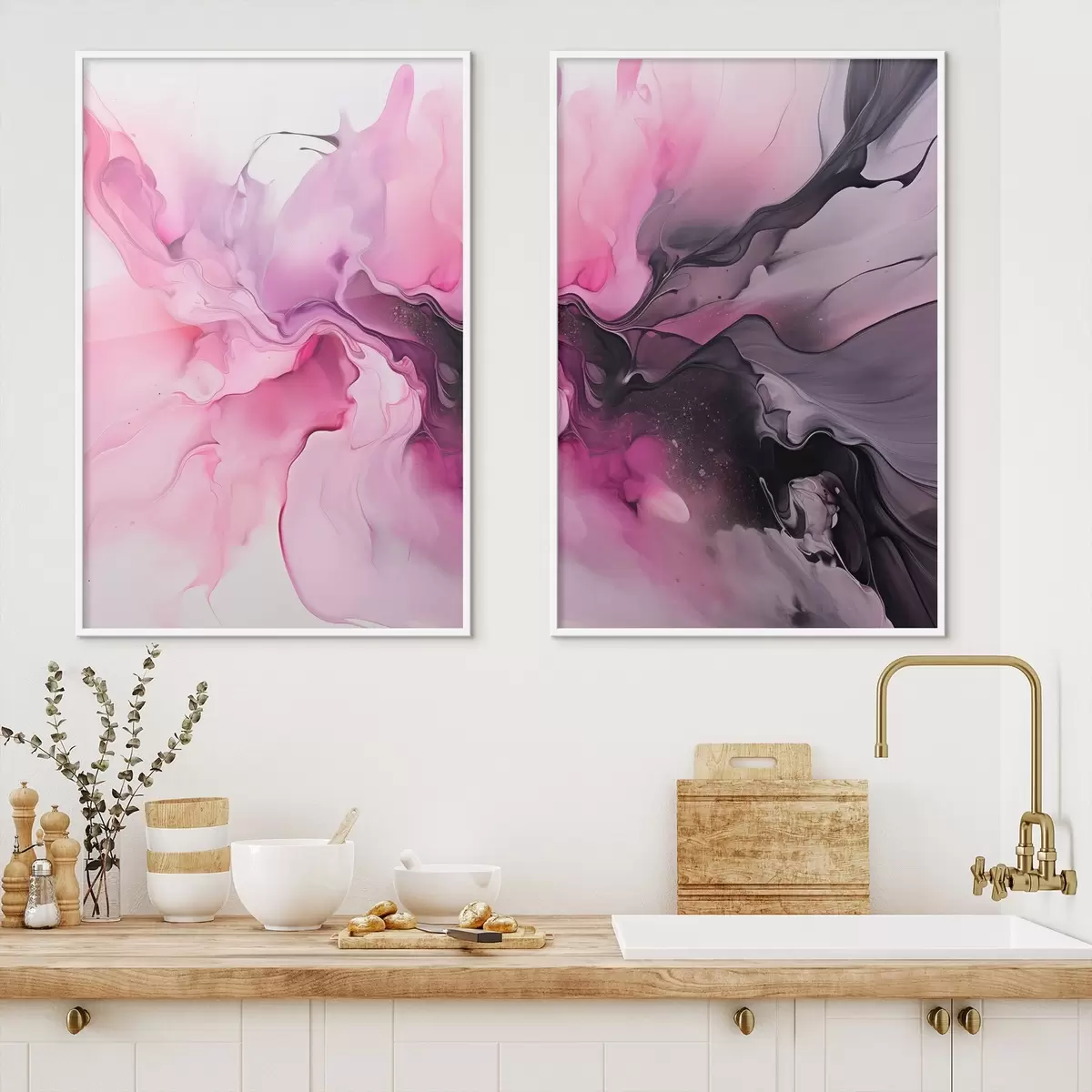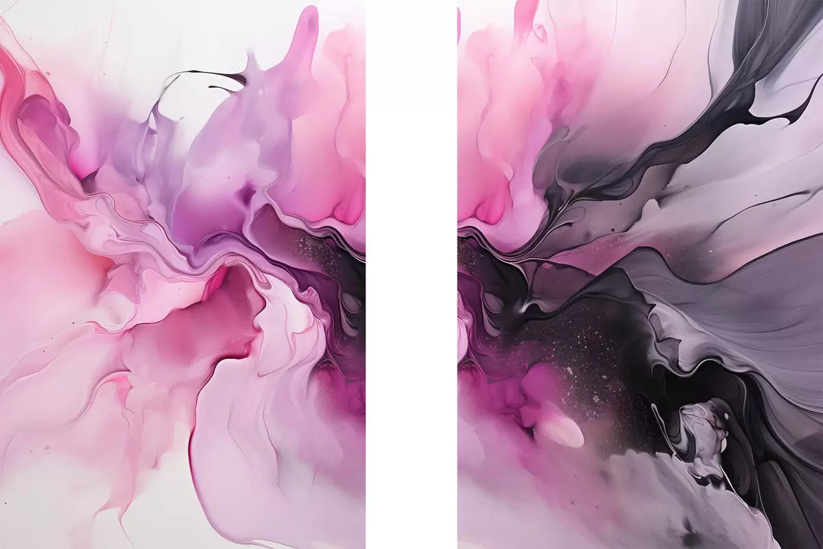 Poster Abstrakte Wirbel aus Rosa, Lila und Schwarz gehen in einer fließenden, organischen Komposition ineinander über und erzeugen ein Gefühl von Bewegung d00532