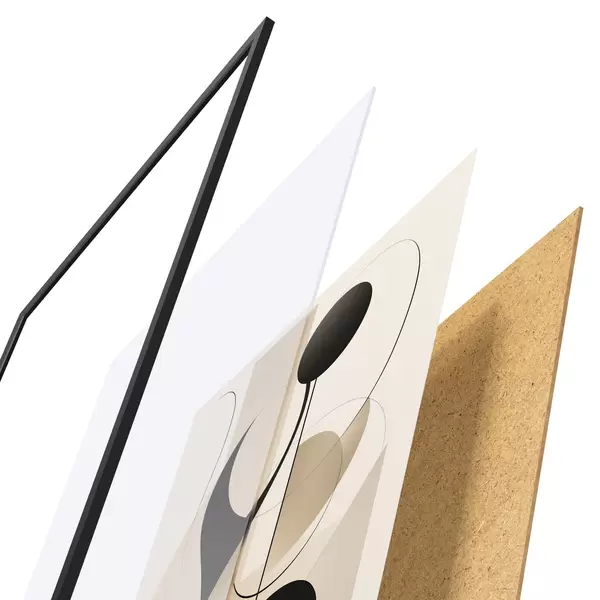 Das Poster besteht aus einem Rahmen, Plexiglas, einem gedruckten Bild und einer Rückwand aus Spanplatten. Dank der Halterungen auf der Rückseite kann das Poster sofort an die Wand gehängt werden.