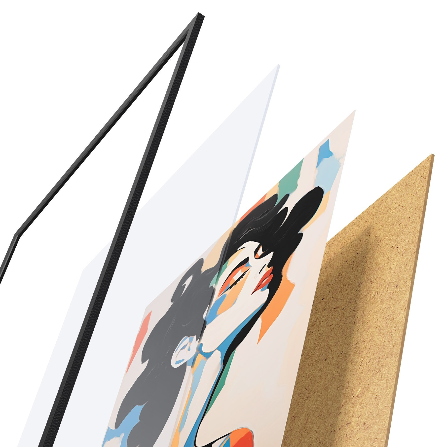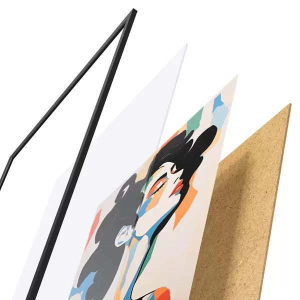 Das Poster besteht aus einem Rahmen, Plexiglas, einem gedruckten Bild und einer Rückwand aus Spanplatten. Dank der Halterungen auf der Rückseite kann das Poster sofort an die Wand gehängt werden.