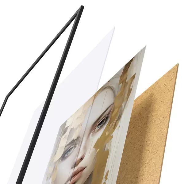 Das Poster besteht aus einem Rahmen, Plexiglas, einem gedruckten Bild und einer Rückwand aus Spanplatten. Dank der Halterungen auf der Rückseite kann das Poster sofort an die Wand gehängt werden.