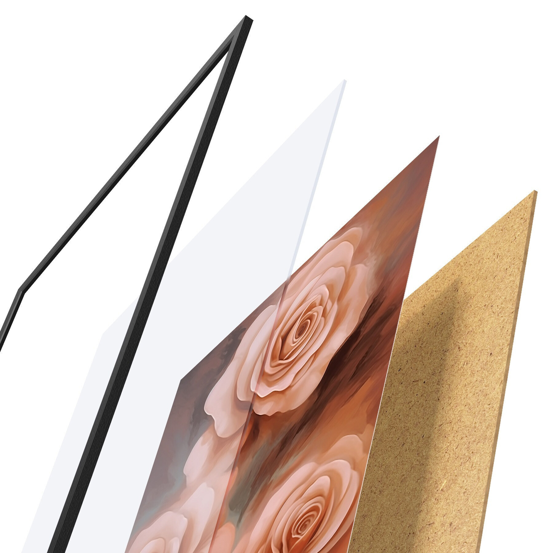 Das Poster besteht aus einem Rahmen, Plexiglas, einem gedruckten Bild und einer Rückwand aus Spanplatten. Dank der Halterungen auf der Rückseite kann das Poster sofort an die Wand gehängt werden.
