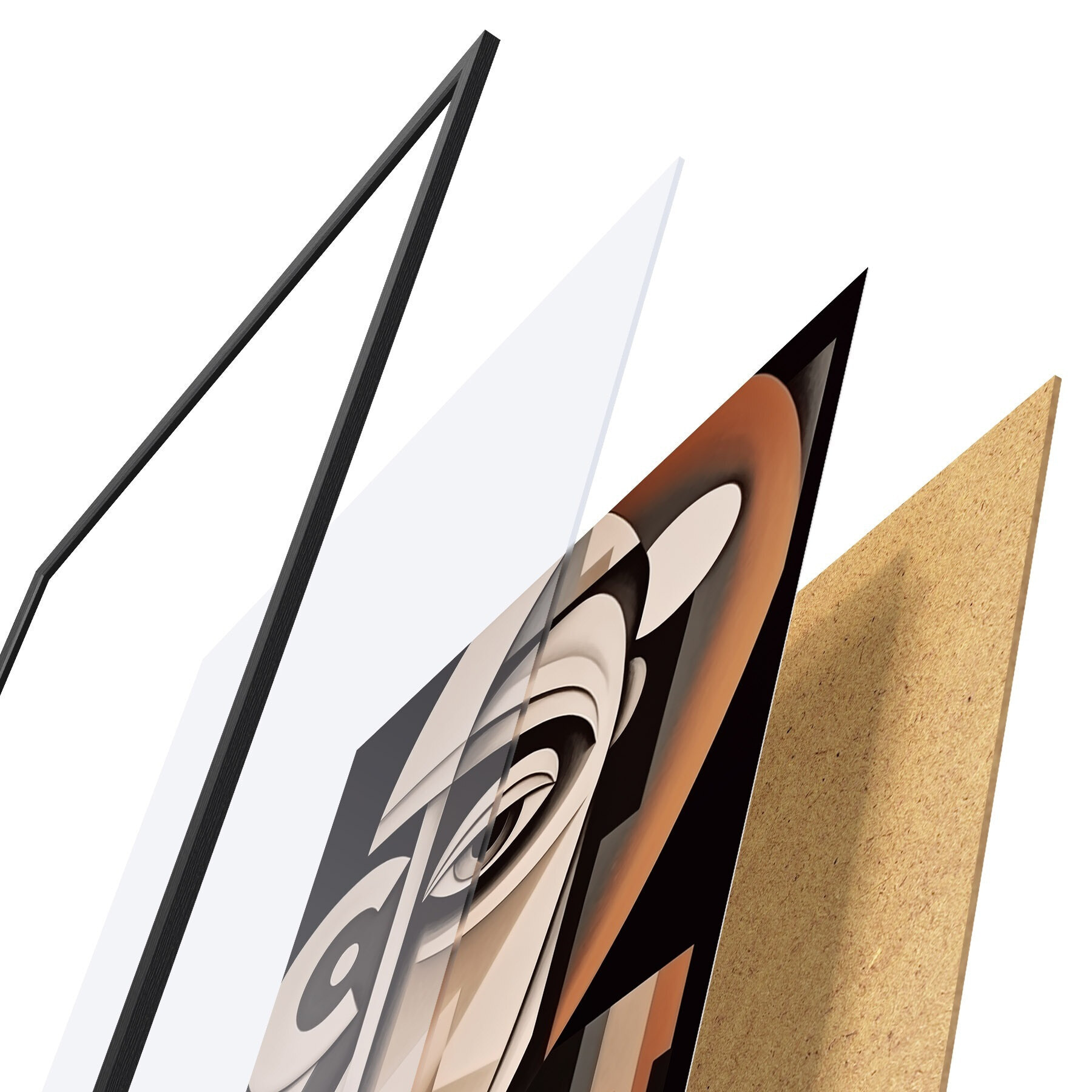 Das Poster besteht aus einem Rahmen, Plexiglas, einem gedruckten Bild und einer Rückwand aus Spanplatten. Dank der Halterungen auf der Rückseite kann das Poster sofort an die Wand gehängt werden.