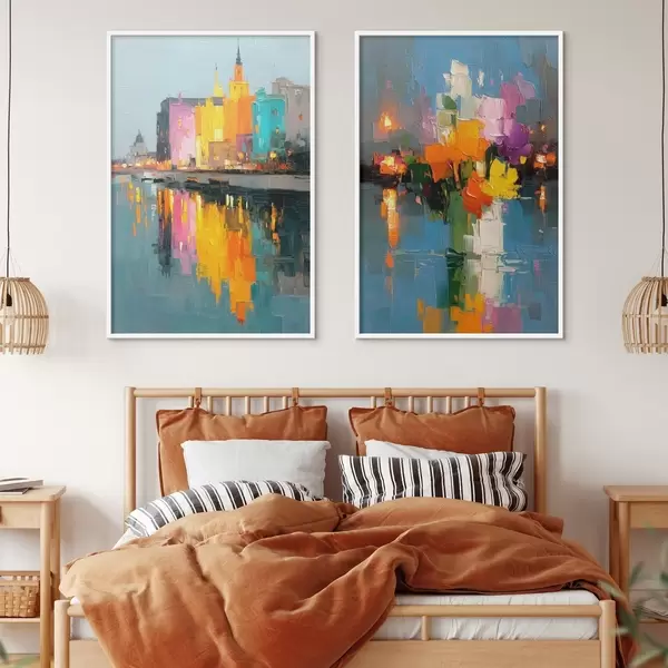 Poster Dynamik der Stadt: abstrakte Komposition mit Lichtreflexionen auf dem Fluss Nr d00569