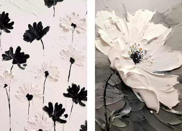 Poster Diptychon mit weißen und schwarzen Blumen in einem modernen Stil Nr d00571