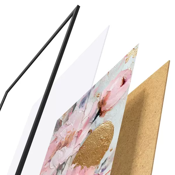Poster Volumetrische Impasto-Malerei mit rosa Pfingstrosen und strukturierten Details Nr d00573