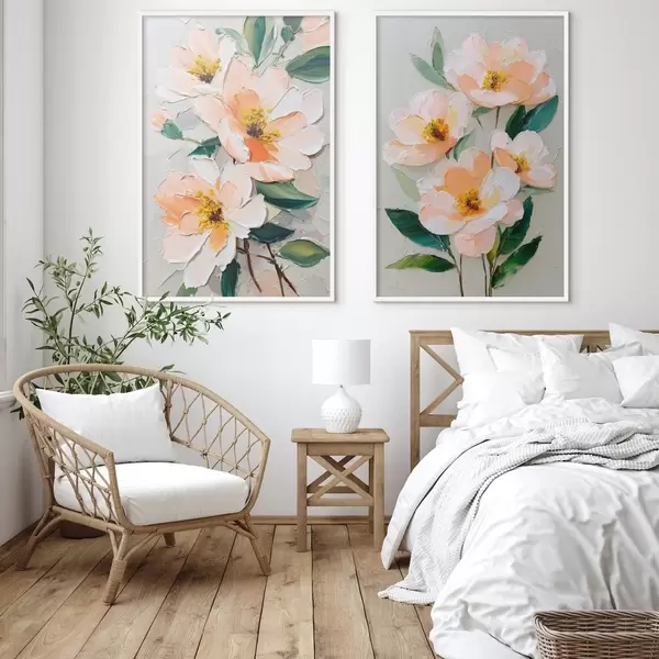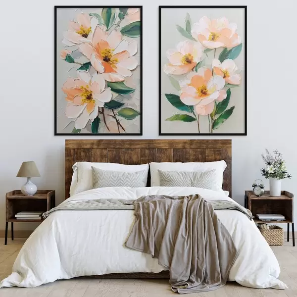 Poster Impasto-Malerei, die einen großen Blumenstrauß und einzelne Blumen kombiniert d00579
