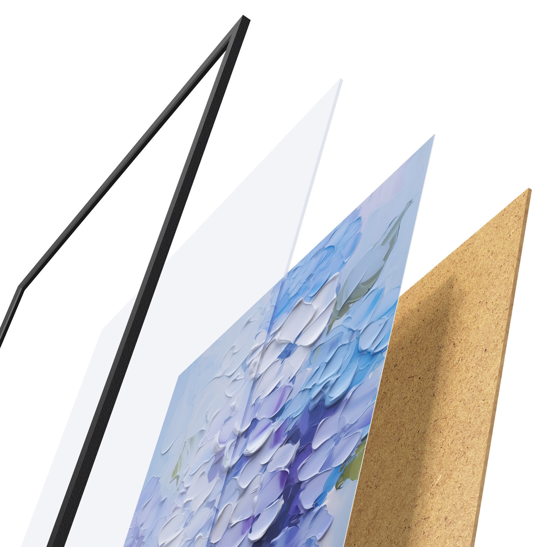 Das Poster besteht aus einem Rahmen, Plexiglas, einem gedruckten Bild und einer Rückwand aus Spanplatten. Dank der Halterungen auf der Rückseite kann das Poster sofort an die Wand gehängt werden.