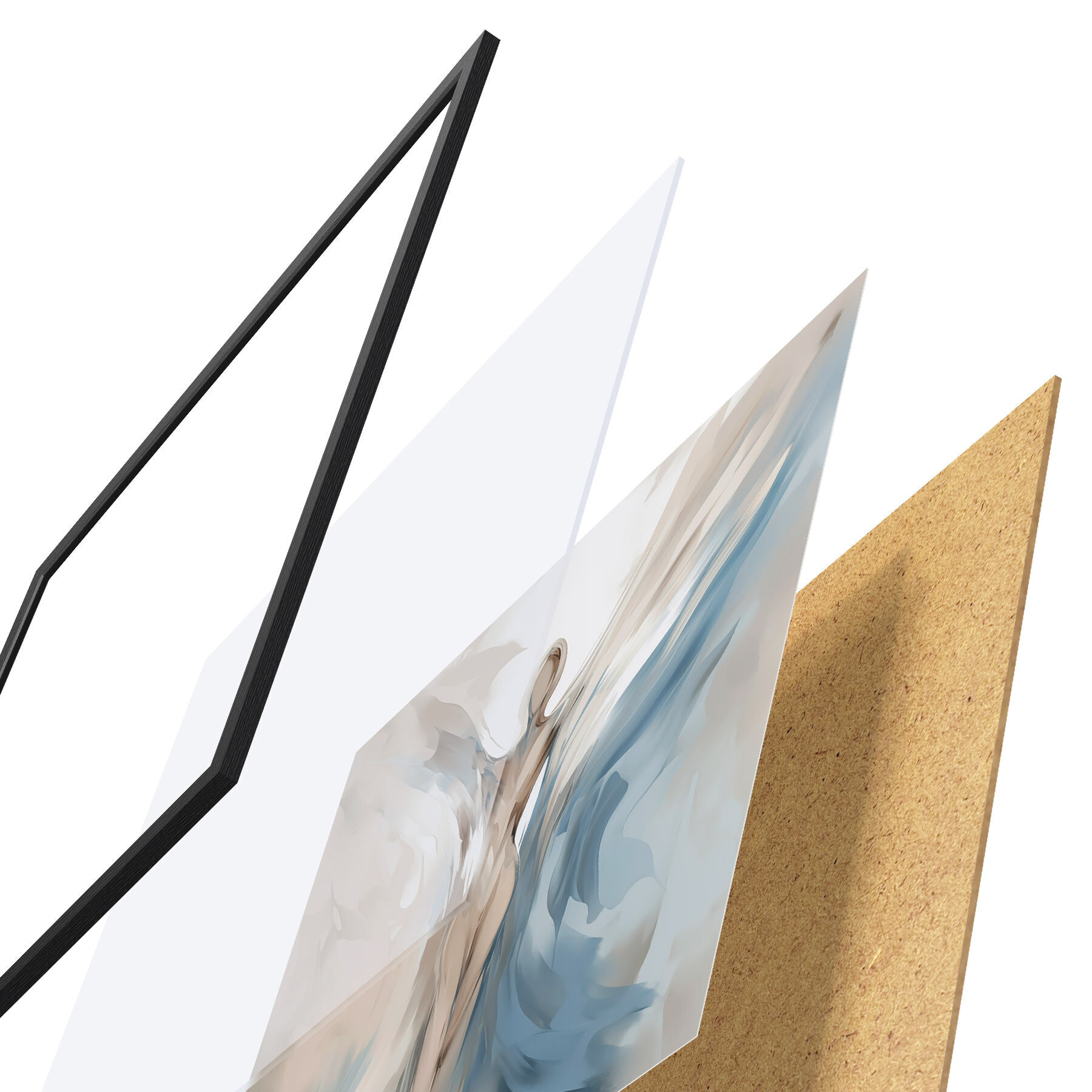 Das Poster besteht aus einem Rahmen, Plexiglas, einem gedruckten Bild und einer Rückwand aus Spanplatten. Dank der Halterungen auf der Rückseite kann das Poster sofort an die Wand gehängt werden.