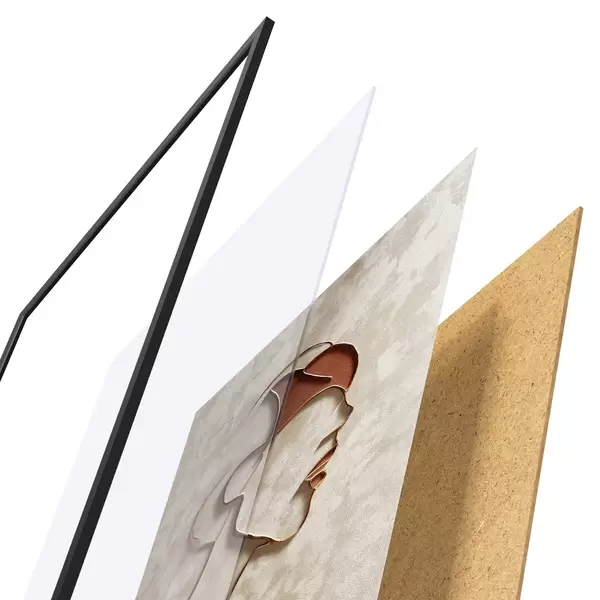 Das Poster besteht aus einem Rahmen, Plexiglas, einem gedruckten Bild und einer Rückwand aus Spanplatten. Dank der Halterungen auf der Rückseite kann das Poster sofort an die Wand gehängt werden.