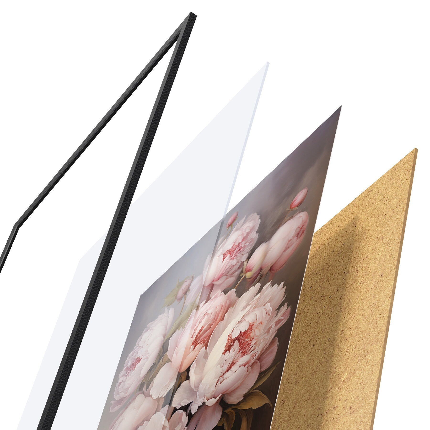 Das Poster besteht aus einem Rahmen, Plexiglas, einem gedruckten Bild und einer Rückwand aus Spanplatten. Dank der Halterungen auf der Rückseite kann das Poster sofort an die Wand gehängt werden.