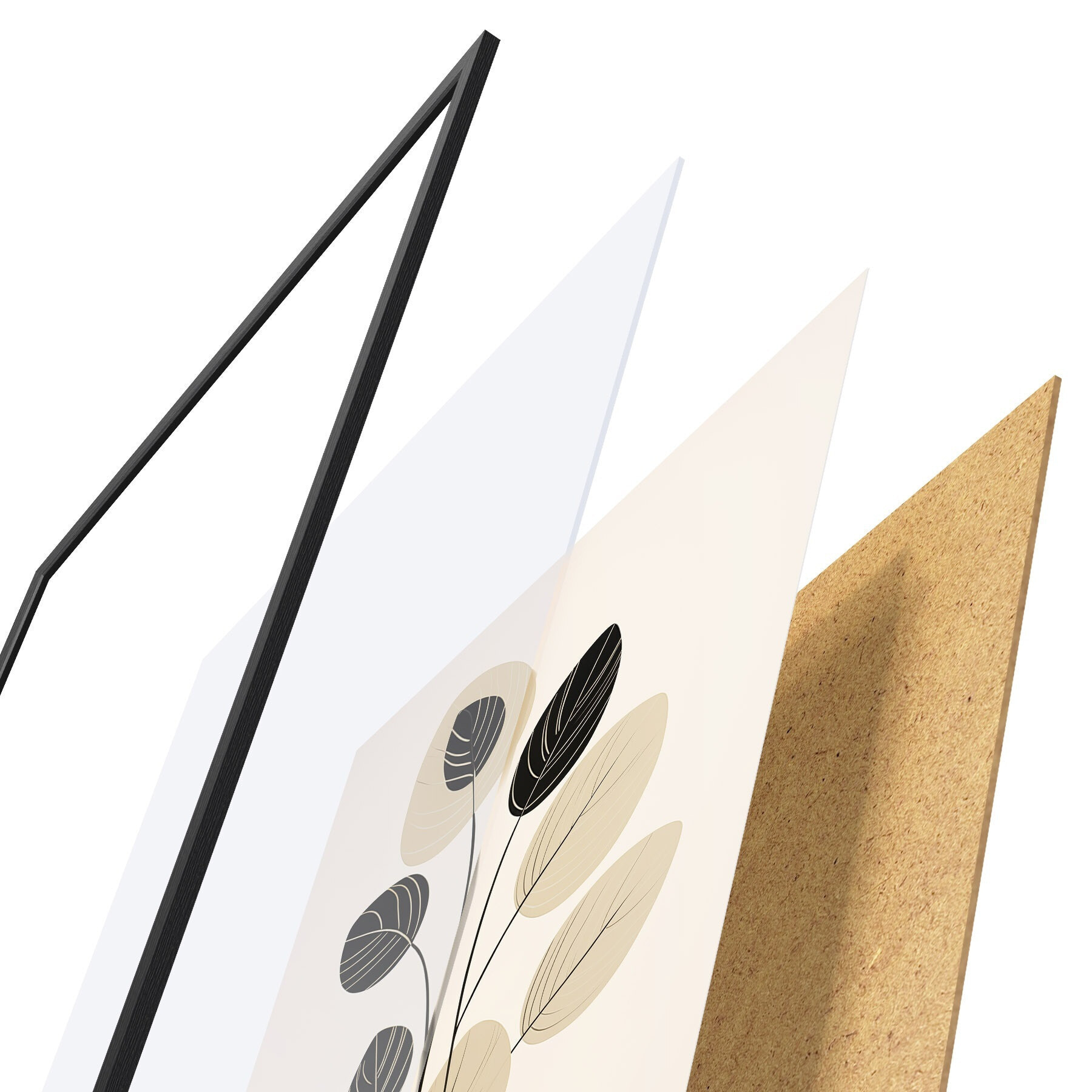 Das Poster besteht aus einem Rahmen, Plexiglas, einem gedruckten Bild und einer Rückwand aus Spanplatten. Dank der Halterungen auf der Rückseite kann das Poster sofort an die Wand gehängt werden.