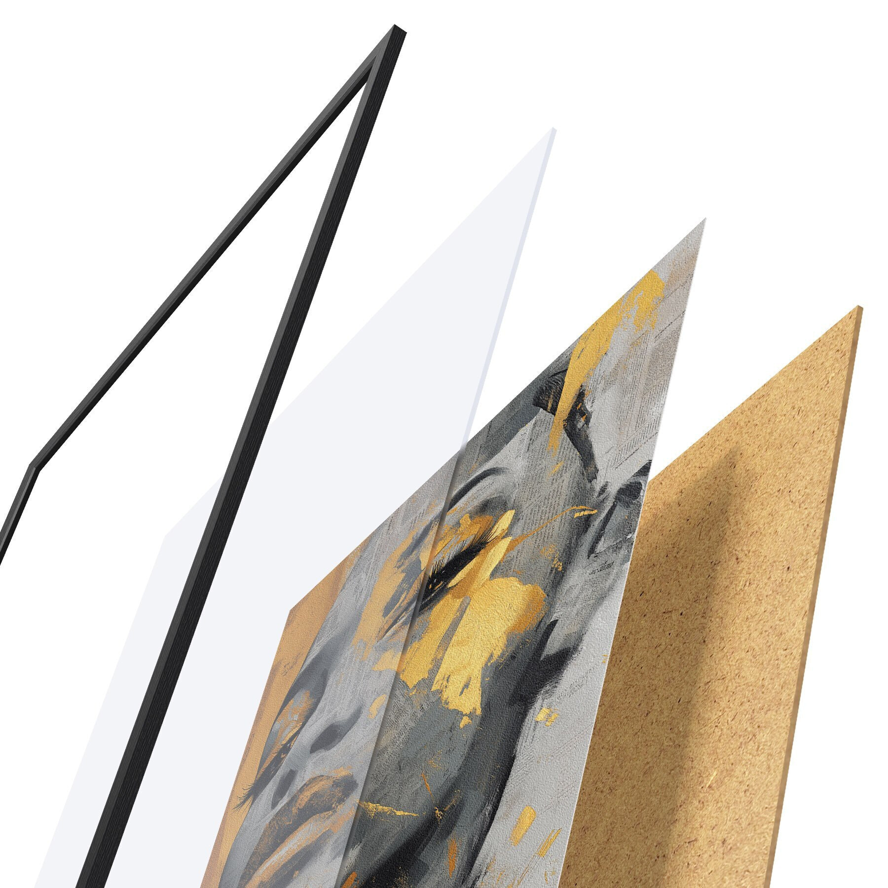 Das Poster besteht aus einem Rahmen, Plexiglas, einem gedruckten Bild und einer Rückwand aus Spanplatten. Dank der Halterungen auf der Rückseite kann das Poster sofort an die Wand gehängt werden.