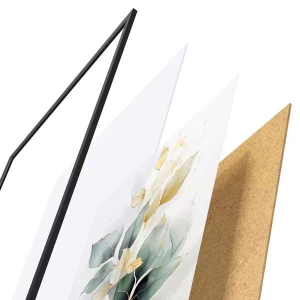 Das Poster besteht aus einem Rahmen, Plexiglas, einem gedruckten Bild und einer Rückwand aus Spanplatten. Dank der Halterungen auf der Rückseite kann das Poster sofort an die Wand gehängt werden.