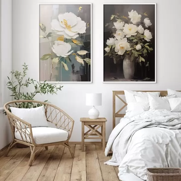 Poster Weiße Pfingstrosen auf dunklem Hintergrund: dekorative Komposition d00634